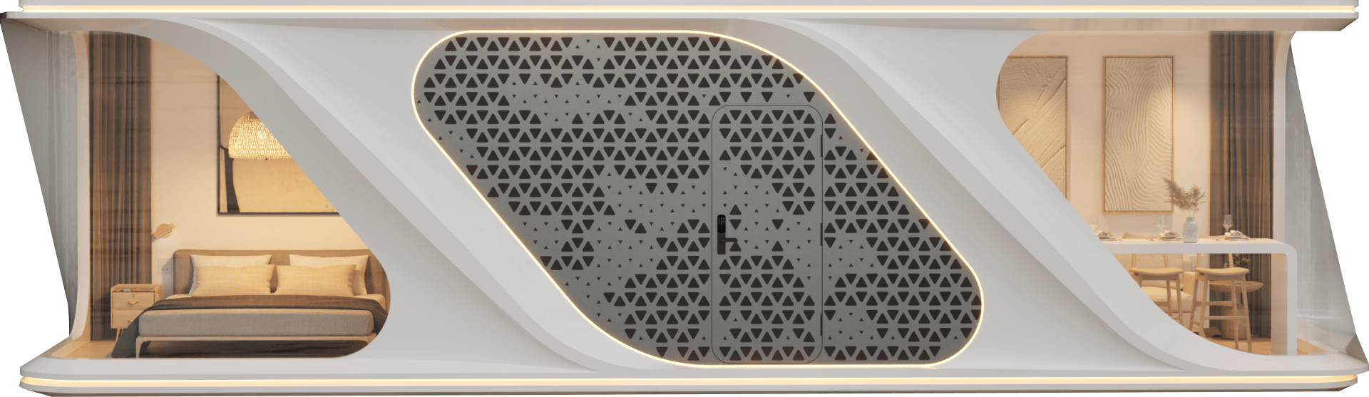 Капсульные дома имеют стандартную планировку, которую нельзя изменить, так как каждая стена является несущей. При желании вы можете уменьшить площадь дома, но увеличить пространство не представляется возможным, так как это лишит дом транспортной мобильности.